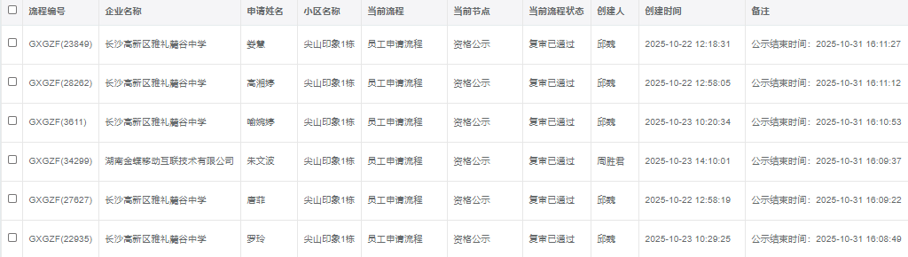 一、以上申请高新区公租房小区的单位及人员已经通过初审、复审审核,公示时间为7天,请于公示期截止后携带纸质申请表格及申请资料(复印件需加盖公章)到长沙高新区公租房客服服务中心办理后续手续,逾期将不予受理。