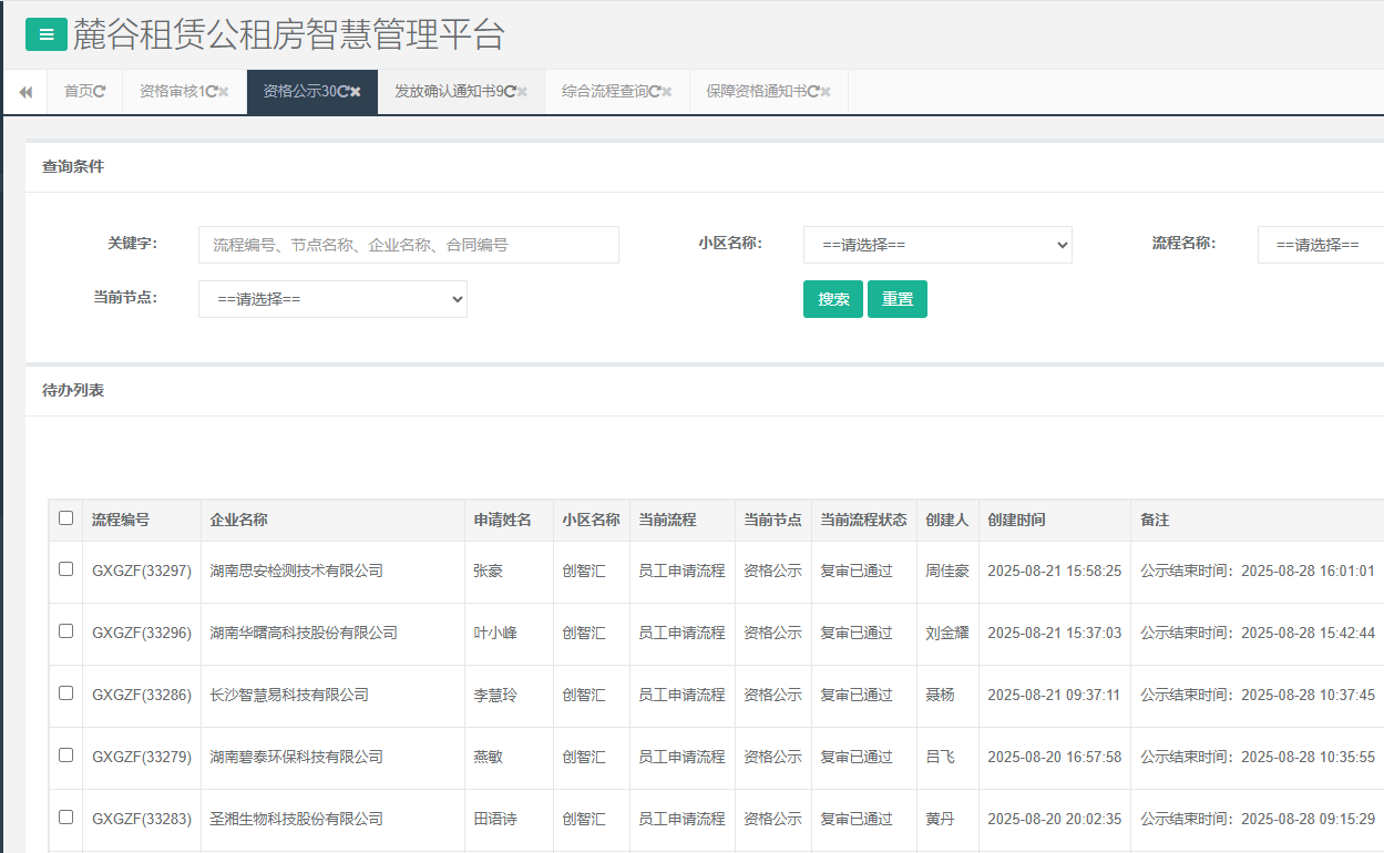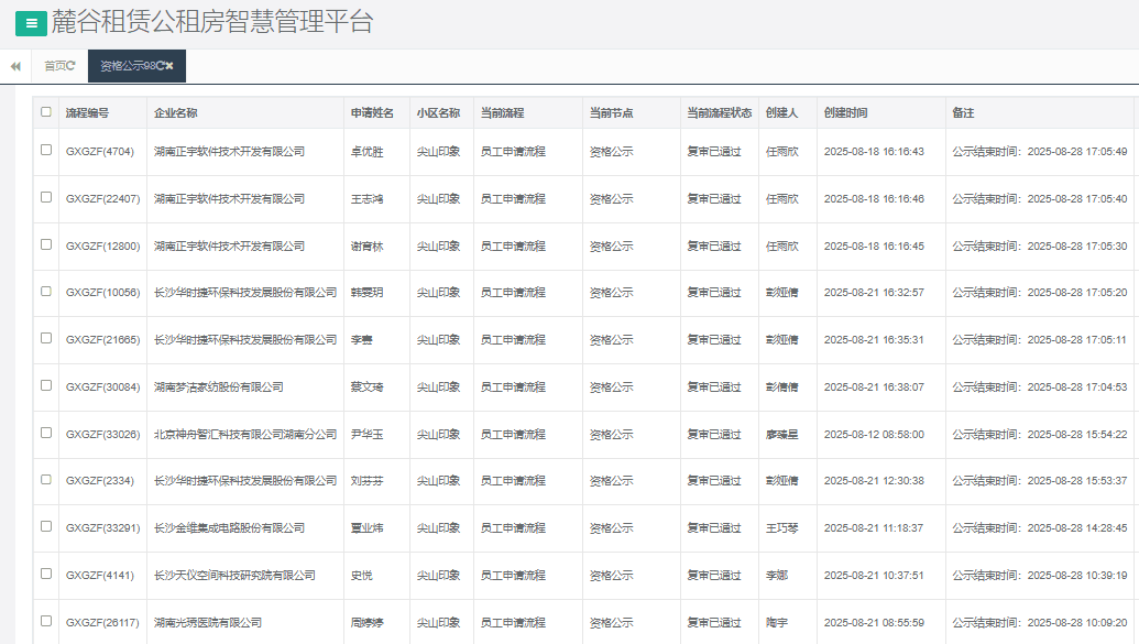 一、以上申请高新区公租房小区的单位及人员已经通过初审、复审审核,公示时间为7天,请于公示期截止后携带纸质申请表格及申请资料(复印件需加盖公章)到长沙高新区公租房客服服务中心办理后续手续,逾期将不予受理。