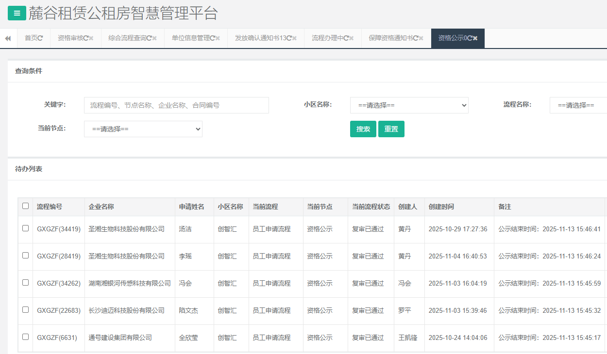 一、以上申请高新区公租房小区的单位及人员已经通过初审、复审审核,公示时间为7天,请于公示期截止后携带纸质申请表格及申请资料(复印件需加盖公章)到长沙高新区公租房客服服务中心办理后续手续,逾期将不予受理。