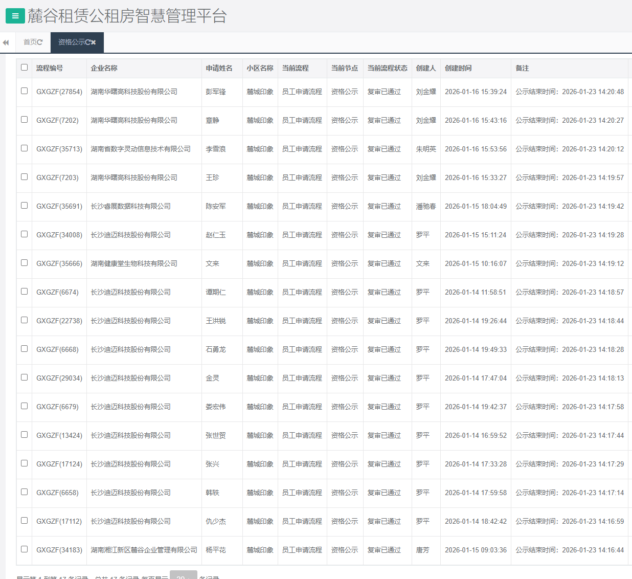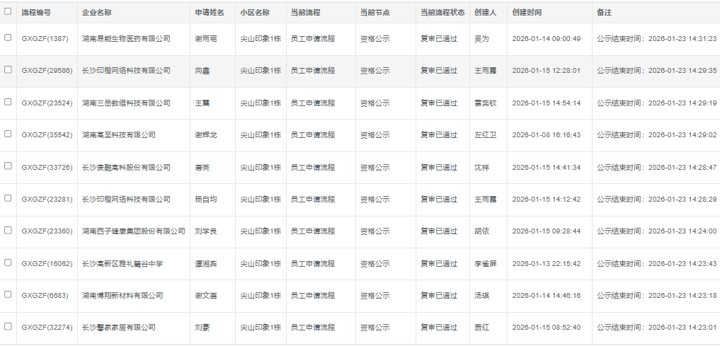一、以上申请高新区公租房小区的单位及人员已经通过初审、复审审核,公示时间为7天,请于公示期截止后携带纸质申请表格及申请资料(复印件需加盖公章)到长沙高新区公租房客服服务中心办理后续手续,逾期将不予受理。
