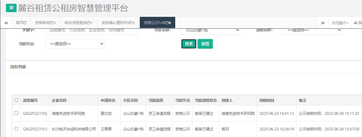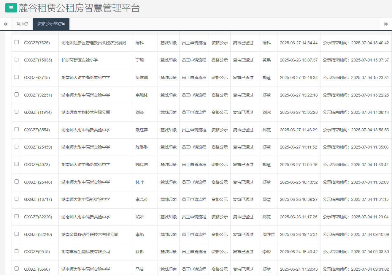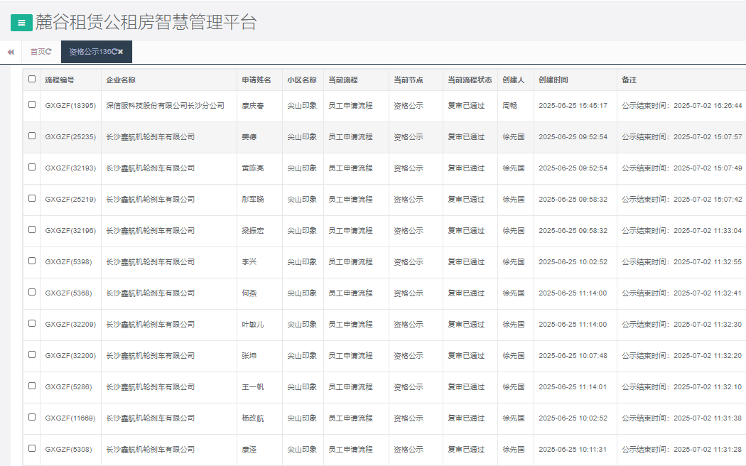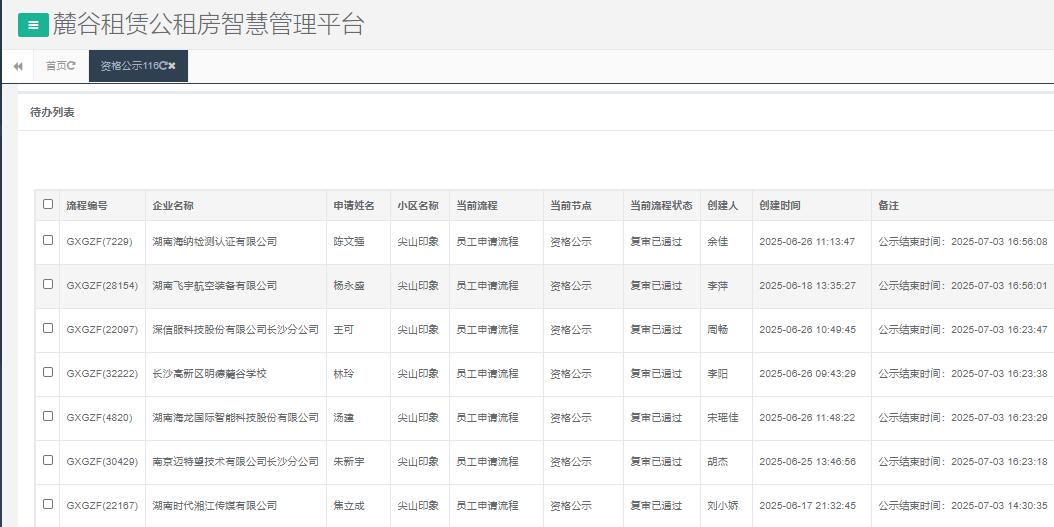 一、以上申请高新区公租房小区的单位及人员已经通过初审、复审审核,公示时间为7天,请于公示期截止后携带纸质申请表格及申请资料(复印件需加盖公章)到长沙高新区公租房客服服务中心办理后续手续,逾期将不予受理。