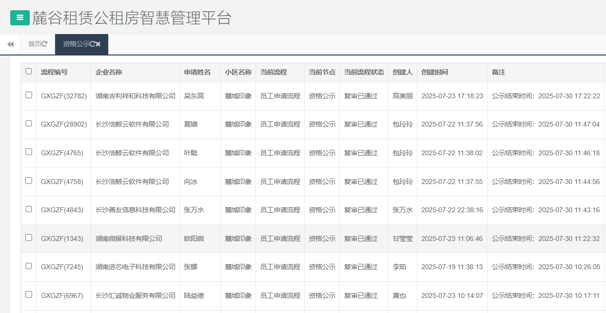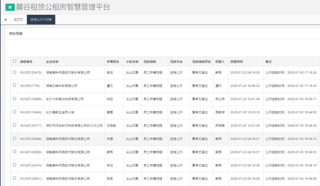 一、以上申请高新区公租房小区的单位及人员已经通过初审、复审审核,公示时间为7天,请于公示期截止后携带纸质申请表格及申请资料(复印件需加盖公章)到长沙高新区公租房客服服务中心办理后续手续,逾期将不予受理。