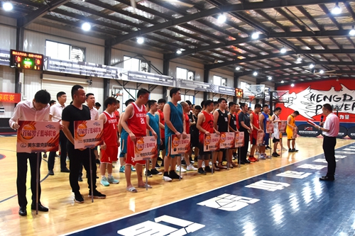 球员代表和裁判依次宣誓后,由麓谷汽车世界副总经理赵军进行授球,麓谷汽车世界首届男子篮球联赛正式拉开序幕。
