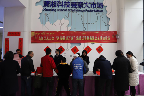 又是一年岁末,又是一年腾讯软件支付宝“集五福 迎新春”的时间,2020年1月15日,不用到处找福、扫福了,在麓谷企业广场让你一次扫个够——由长沙高新区总工会主办,麓谷企业广场、新长海党群工作联组、长沙高新控股集团有限公司协办的“送万福 进万家”猜灯谜送福活动在麓谷企业广场创业大楼1楼大厅拉开帷幕,书法名家现场写福、送福,还怕集不到五福吗?